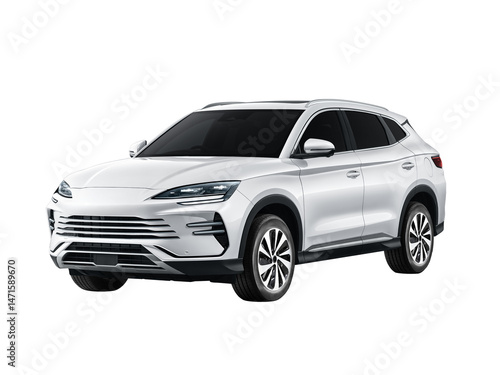 SUV electric car side view Isolated transparent background.