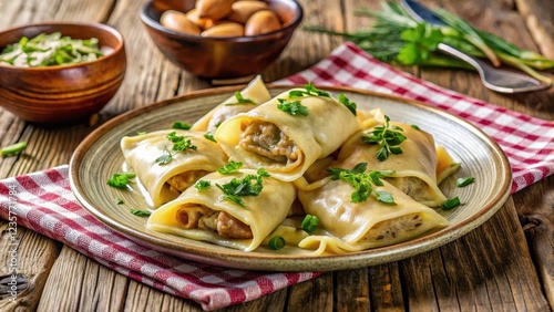 Swabian Maultaschen with Onions on a Plate, state in germany