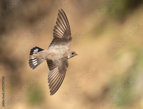 Swallow in flight with blurred background
