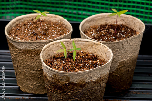 Swamp milkweed seedling growing in indoor greenhouse. Gardening and horticulture concept.