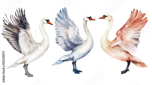 Swan bird, Elegant Watercolor birds hand-painted Isolated. Perfect for designers, nature lovers, creative decor. Clipart