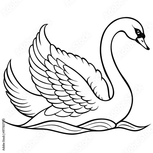 Swan gliding on water with detailed feather patterns and graceful lines vecto