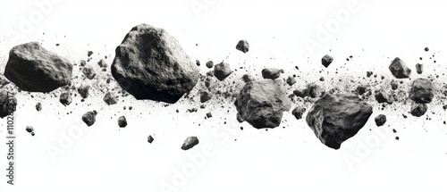 swarm of asteroids isolated on white background