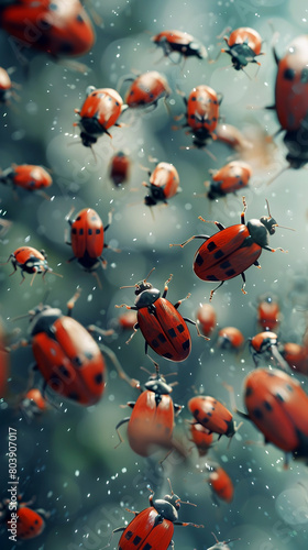 Swarming Ladybugs Amid Rain in their Natural Habitat