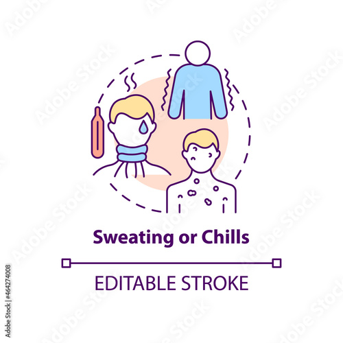 Sweating and chills concept icon. Pneumonia symptom abstract idea thin line illustration. High fever. Coldness and shivering. Cold sweats. Vector isolated outline color drawing. Editable stroke
