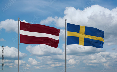 Sweden and Latvia flags, country relationship concept