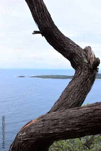 Sweeping view over Zenith Beach and Shoal Bay from the Tomaree Mountain Lookout - Shoal Bay, NSW, Australia. March 2021. This was during the Covid 19 pandemic.