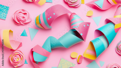 Sweet Confetti Celebration: A whimsical arrangement of paper craft and meringue candies, suitable for birthday decor.