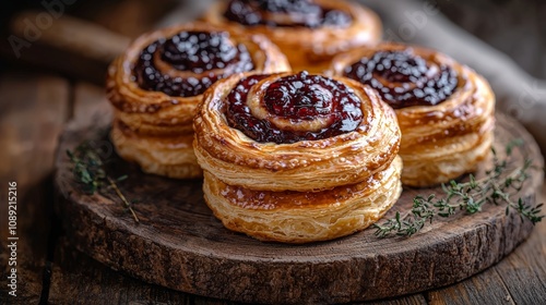 Sweet Danishes with Fruit Fillings on Rustic Board
