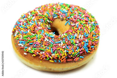 Sweet donut with rainbow candy sprinkles