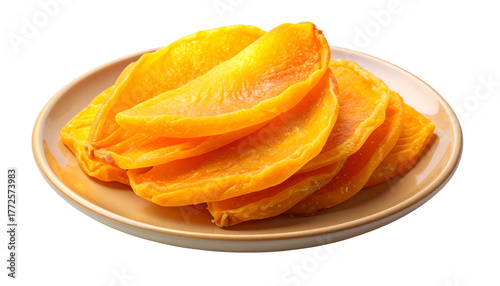 Sweet Dried Mango Slices on a Plate, Healthy Tropical Fruit Snack in Studio Food Photography