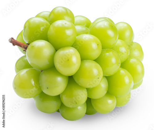 Sweet Green grape with leaves isolated on white, Shine Muscat Grape isolated on white background With clipping path,