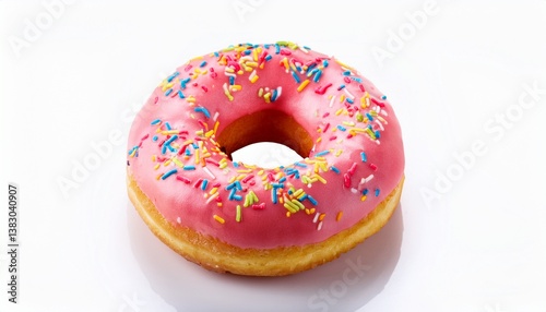 sweet pink donut decorated with colorful sprinkles on white background strawberry donut isolated on white background
