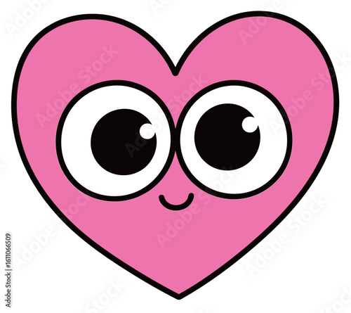 Sweet pink heart cartoon character with wide, innocent eyes and a gentle smile, symbolizing love and affection.