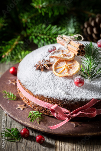 Sweet poppy seed cake with powdered sugar for Christmas.