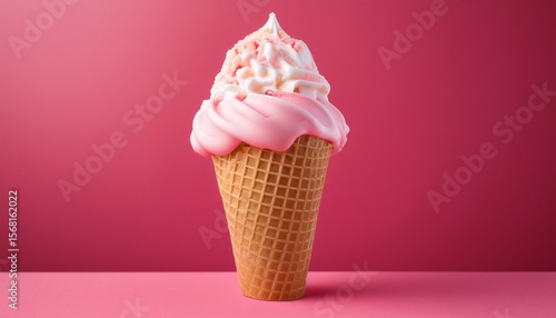 sweet summer delight a charming and whimsical ice cream cone sits proudly inviting a taste of pure sugary bliss on a cheerful vibrant pink background evoking memories of warm days