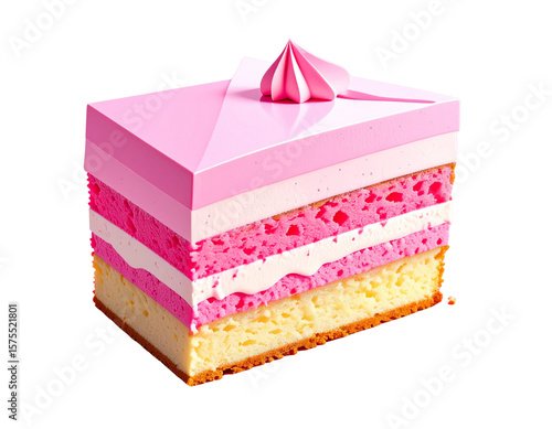 Sweet triangular treat with fluffy cake layers, rich creamy filling, and vibrant pink