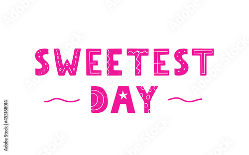 Sweetest Day - hand drawn lettering for your design. Vector pink phrase on a white background.