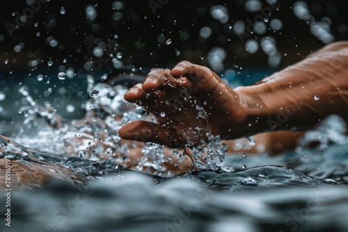 Swimmer displaying precise breaststroke technique, hands entering water, olympic sport concept