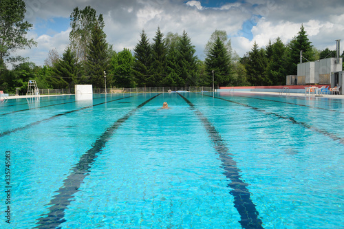 Swimmer in the Olympic swimming pool with clear blue water