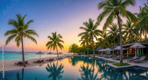 swimming pool located on the beach surrounded by coconut trees