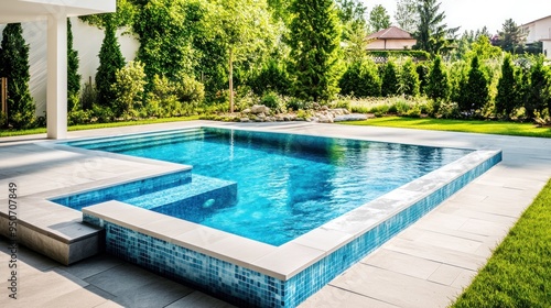 Swimming Pool with Blue Tiles and Steps