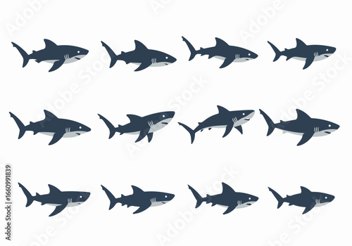 Swimming sharks sequence with transparent background