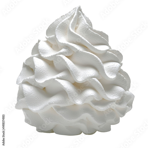swirl of fluffy white whipped cream forms soft, cloud like texture, creating delightful and inviting appearance. creamy peaks are smooth and perfectly shaped, evoking sense of indulgence