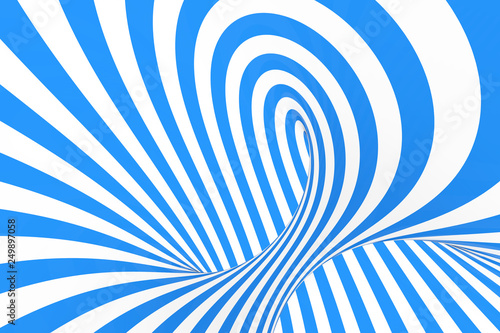 Swirl optical 3D illusion raster illustration. Contrast blue and white spiral stripes. Geometric winter torus image with lines.