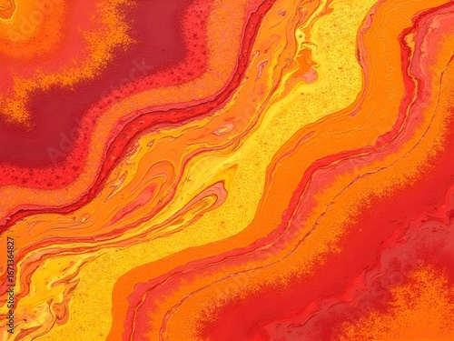 Swirling Abstract Art: Fiery Hues of Red, Orange, and Yellow in Fluid Motion