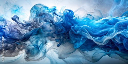 Swirling Blue and Grey Abstract Ink Art Ethereal Smoke Clouds Modern Wall Decor Tranquil Serenity Contemporary Design Background