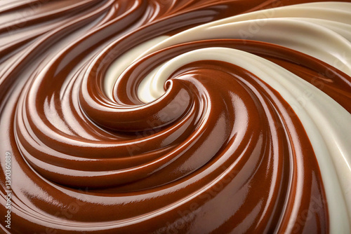 Swirling Chocolate and White Cream Close-Up Dessert Background Texture
