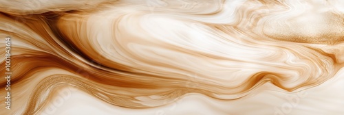 Swirling coffee blend gracefully mixes into creamy milk, creating a mesmerizing abstract pattern in a warm kitchen setting. Generative AI