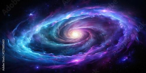 Swirling cosmic clouds of purple and blue gases against a deep black galaxy background, void, galaxy background