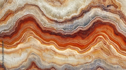 Swirling, layered stone texture in warm earth tones. Rich browns, tans, and creams create a dynamic, flowing pattern