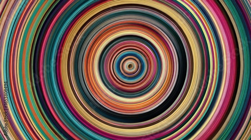 Swirling layers of vivid colors in a circular pattern convey a sense of dynamism and creativity. This abstract design invites viewers to explore its depth and complexity.