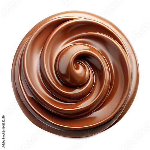 Swirling liquid milk chocolate in a circular pattern on a black background food sweet isolated on a transparent background