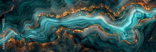 Swirling patterns of blue and gold dance across the canvas in a harmonious blend of colors, creating a sense of movement and depth