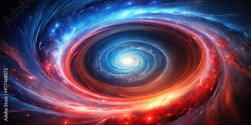 Swirling red and blue spiral galaxy in abstract background, galaxy, swirl, red, blue, space, universe, cosmic, vibrant