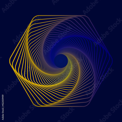 Swirling symbol. Optical illusion. Tunnel abstract. Twisted colored circle 3d. Design with neon, stroke, lines and flow. Vector illustration.