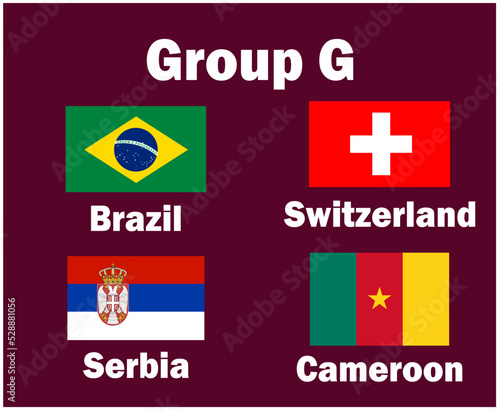 Switzerland Brazil Serbia And Cameroon Emblem Flag Group G With Countries Names Symbol Design football Final Vector Countries Football Teams Illustration
