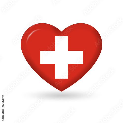 Switzerland heart flag 3d icon, badge or button. Swiss national symbol. Vector illustration.