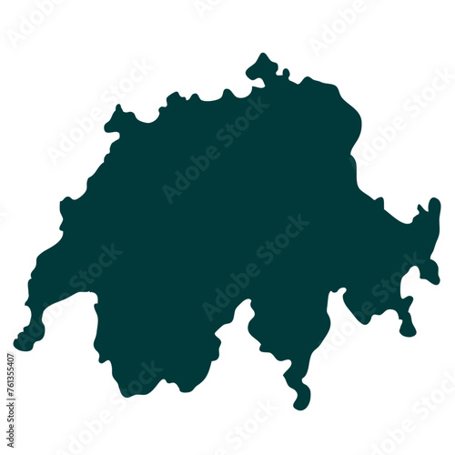 Switzerland map silhouette, silhouette of switzerland map on white background
