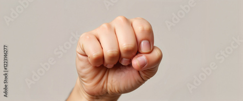 Swollen knuckles showing clenched fist against neutral background, pain relief
