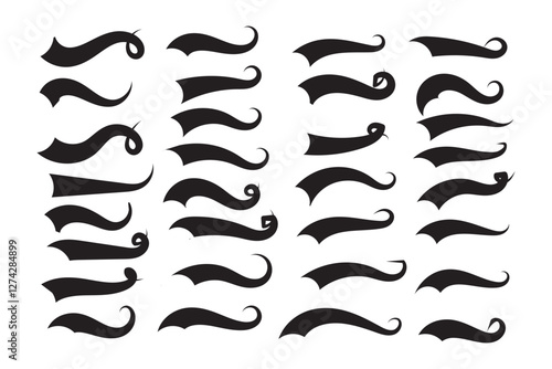 Swoosh, swash underline stroke set. Hand drawn swirl swoosh underline calligraphic element. Vector illustration. Variety Design. Eps10