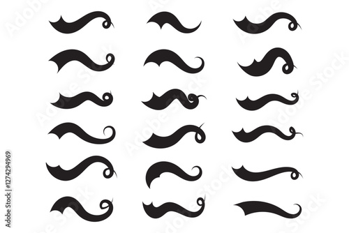 Swoosh, swash underline stroke set. Hand drawn swirl swoosh underline calligraphic element. Vector illustration. Variety Design. Eps10