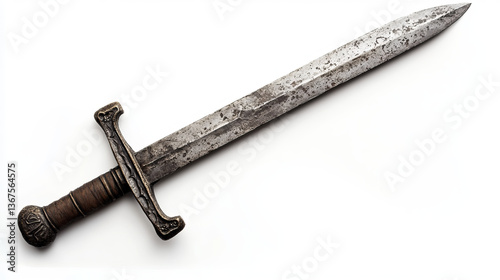 Sword with sharp blade and metal handle old medieval knight weapon isolated on white background