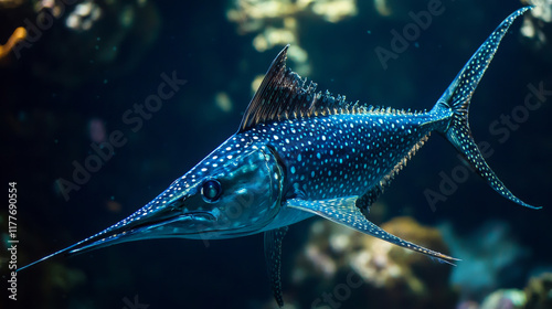 Swordfish from the particles. Swordfish is made up of little circles and dots.
