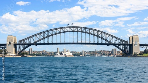 Sydney harbour bridge under a clear blue sky, symbolizing connection and beauty.