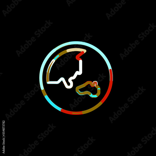Symbol globe asia from multi-colored circles and stripes. Red, brown, blue, white